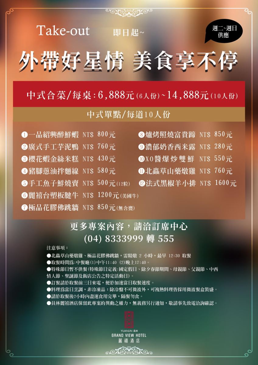 員林麗禧酒店【餐廳用餐】平假日定義一覽表